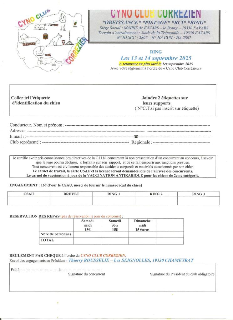 Tous les chiens devront avoir obtenu le C.S.A.U.(Certificat de Sociabilité et d’Aptitude à l’Utilisation) avant de pratiquer le ring ou toute autre discipline de mordant.